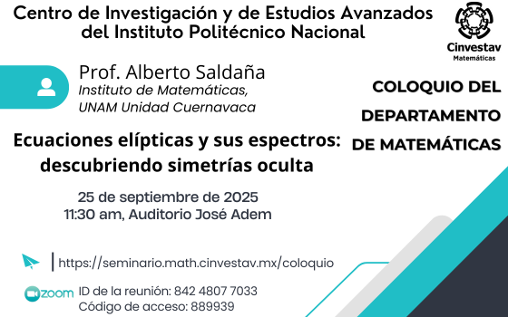 04 de septiembre de 2024. 11:30 hrs. Salón 131. Departamento de Matemáticas, Cinvestav-IPN